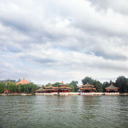 Beijing, China-October 6, 2020: Lotus pond scenery in Beijing Summer Palace, China