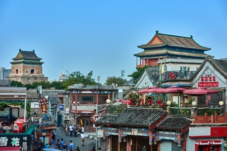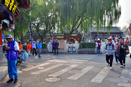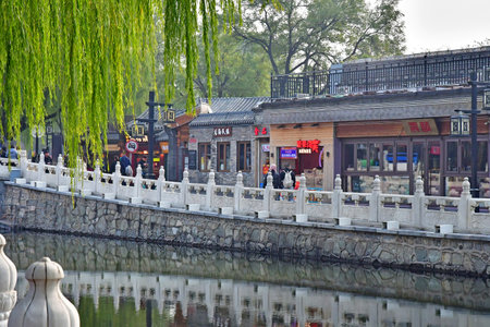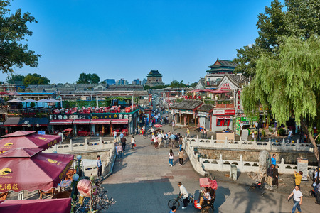 Beijing China - October 26, 2016: Unidentified people visit Houhai lake Futong street.