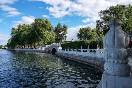 Yongan Bridge BBeijing China Beihai public park created 1000AD. Stupa built in 1600s.