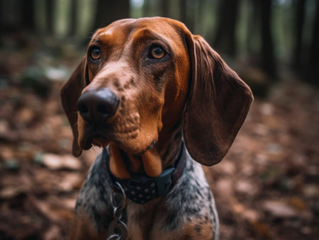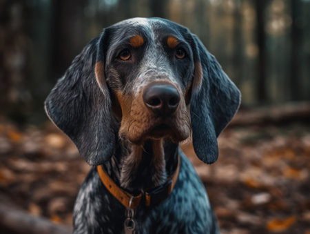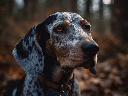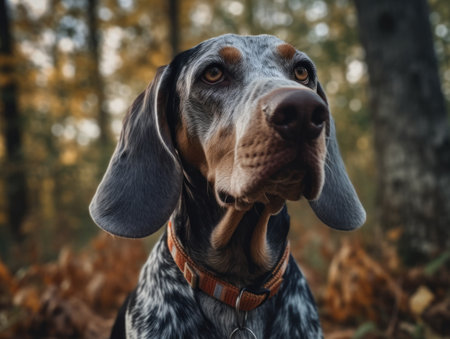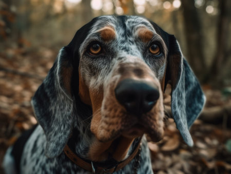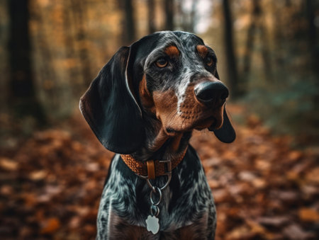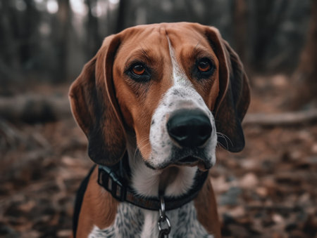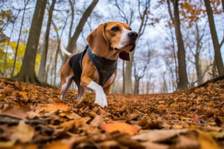 beagle tracking scent on fallen autumn leaves, created with generative ai