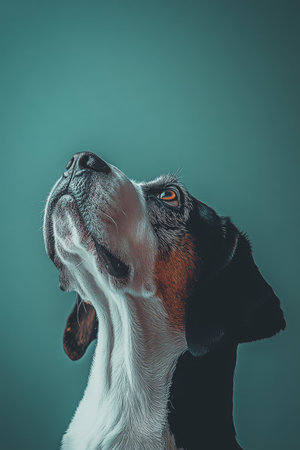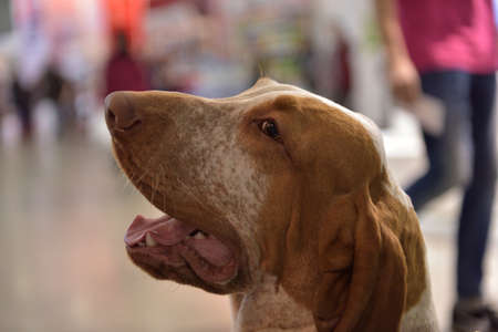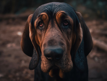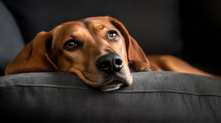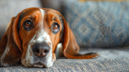 curious basset hound dog with floppy ears staring at camera, showcasing adorable pet with copy space concept in background