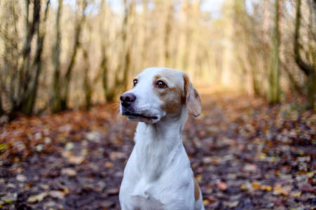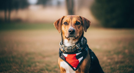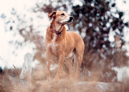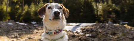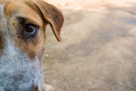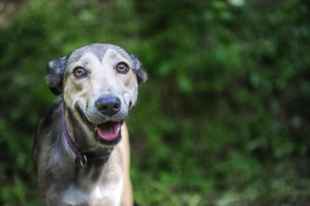 Portrait of a beautiful mixed breed dog in the park. Selective focus.