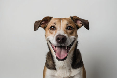 Charming Close-up Portrait of a Playful Puppy with Big Eyes and Adorable Expression in Studio Light