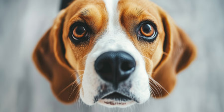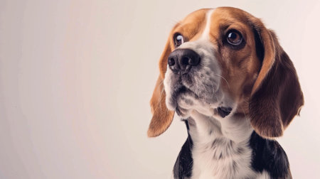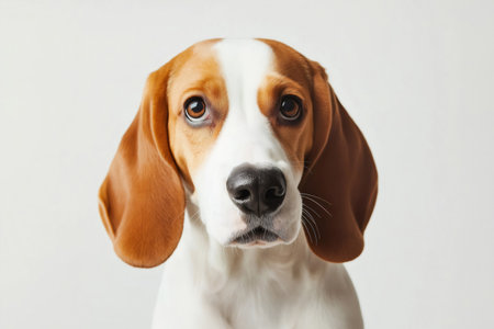 Charming Beagle Dog Portrait with Light Brown and White Fur, Expressing Emotional Gaze in Studio