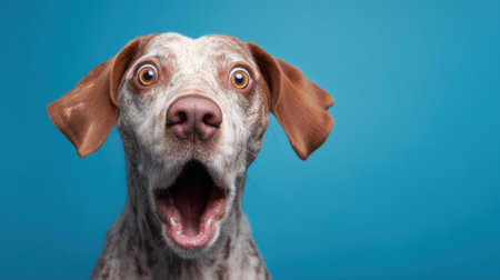 Chesapeake Bay Retriever, angry dog baring its teeth, studio lighting pastel background