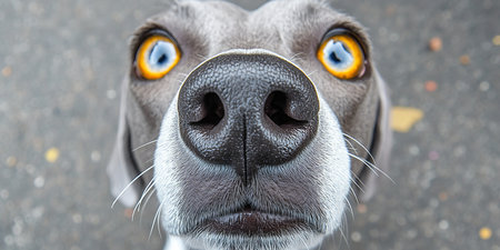 Charming Greyhound Dog with Expressive Eyes and Beautiful Nose on a Soft Gray Background, Close-Up