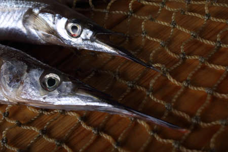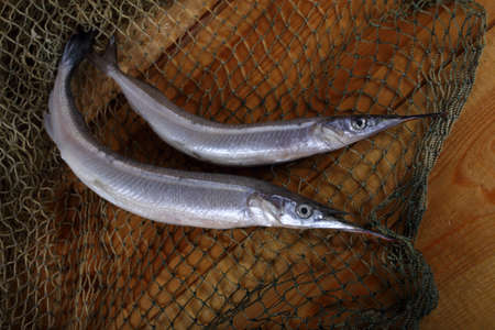 One little needle fish, uncooked macro studio shot