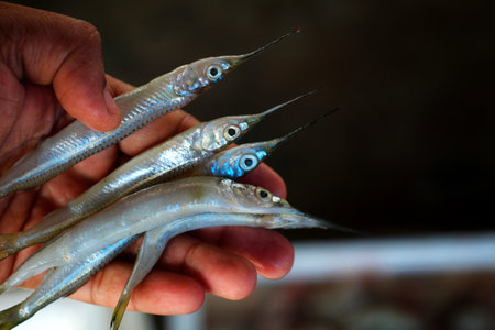 halfbeak spipe needle fish in hand in nice blur background HD
