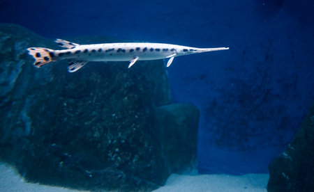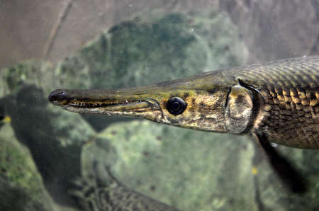 Baltimore, Maryland, USA - October 9, 2021: Longnose Gar (Fish) on Display at the National Aquarium in Baltimore