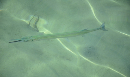 Fish needle in sea water. Nature