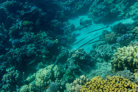 Cornetfish on a coral reef