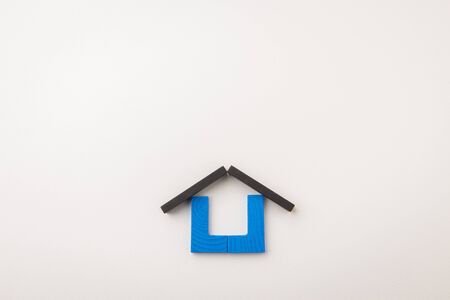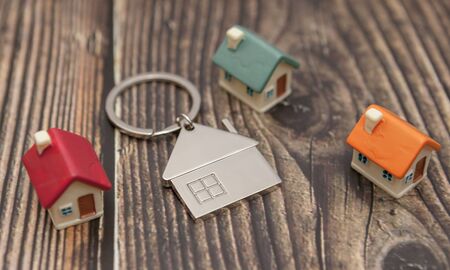house home model on wooden desk. realtor real estate agent workplace. buying selling renting property