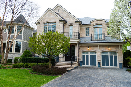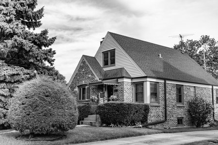 Neighborhood architecture. Property in neighborhood. Residential property house. Residence architecture. Suburban neighborhood. Suburban house architecture. Private family house. Housing market