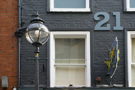 House number on the wall thirty, detail of a wall of a house with a number of information