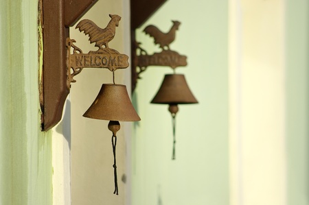 Doorbell welcome to home, Old cock symbol bell for ring and welcome of house