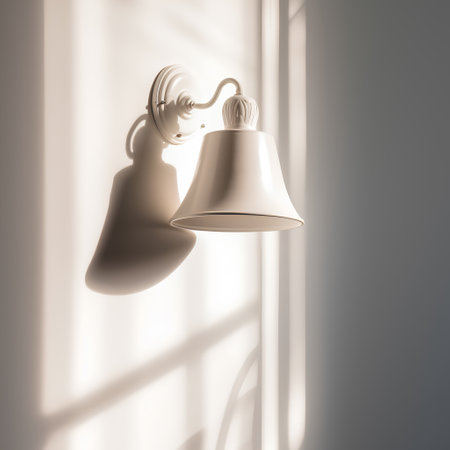 school bell mounted on a clean, brightly painted wall, created with generative ai