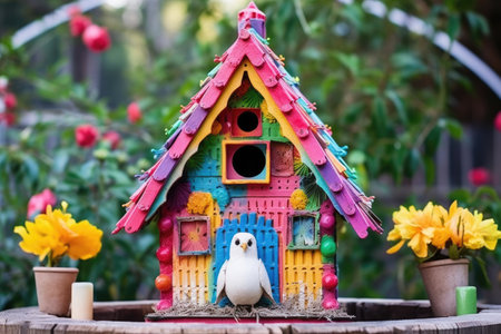 ornamental birdhouse turning into a colorful altar, created with generative ai