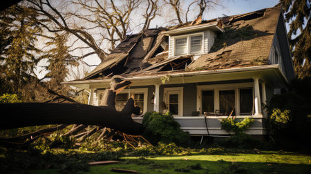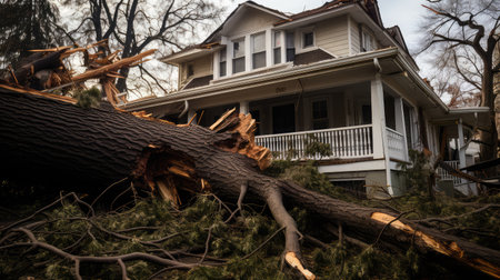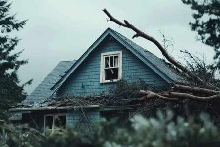 damage tree falls on house illustration roof debris, branches impact, accident storm damage tree falls on house