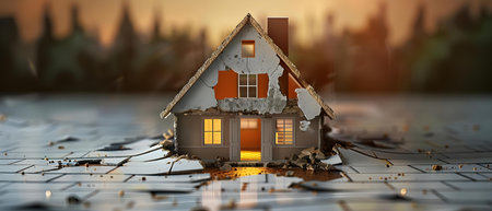 A captivating image of a miniature house shows a crumbling wall, revealing a warm interior. This evocative scene reflects themes of loss, abandonment, and resilience.