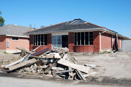 Damaged house in the midst of renovation in the aftermath of Hurricane Katrina.