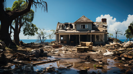 Homes ripped apart by the force of nature --ar 3:2 Job ID: 3c685de7-3cab-4672-8b7f-5e3b10192b9d