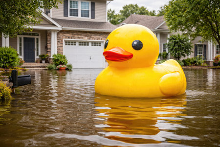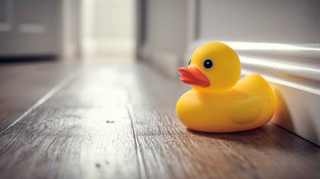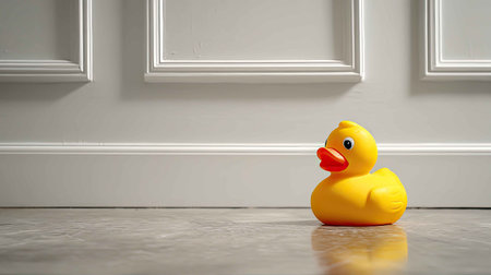 Yellow rubber duck over blue background with space for text or other design