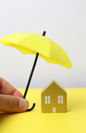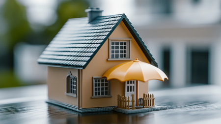 Model House with Umbrella, Concept for Home Insurance and Protection, Investment and Real Estate