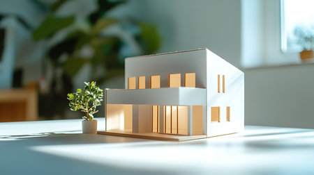 Miniature model of a contemporary house showcasing its design and layout, ideal for real estate and architectural presentations