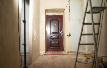 New home installing material for repairs in an apartment is under construction door for a under construction, remodeling