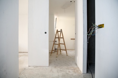 Photo of stepladders in empty apartment, reconditioning work