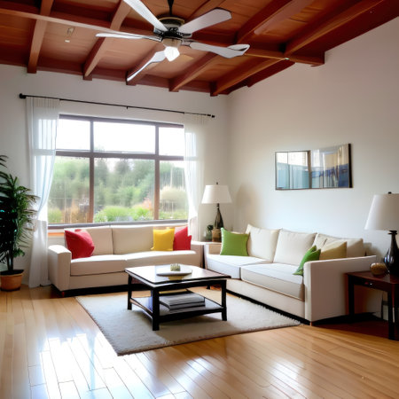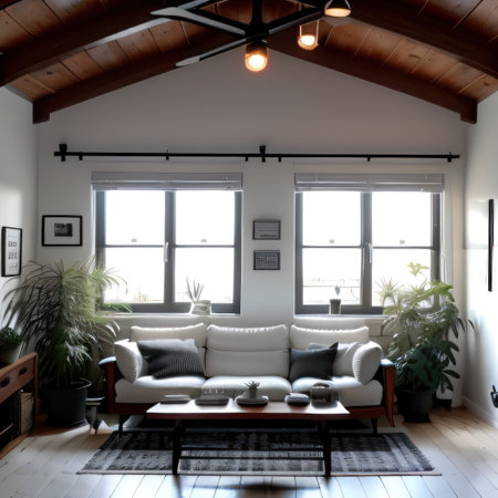 An AI generated illustration of a cozy interior of a living room with a potted plant on the table