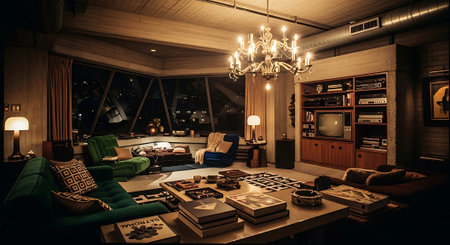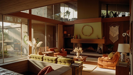 A stylish modern living room interior design with vivid and warm tone colors in the apartment. Generative AI AIG27.