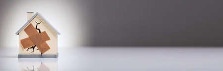 Debt Management And Aid. Damaged House Fixed With Bandage