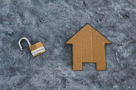 reopening businesses and restaurants after the covid-19 virus pandemic outbreak, open lock with Reopening text on it next to house icon and world map
