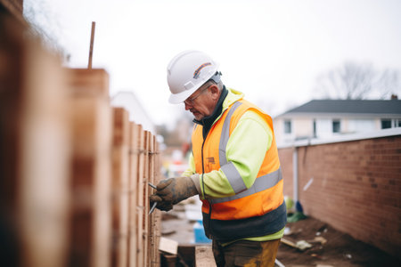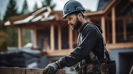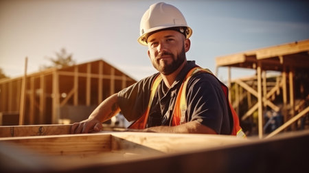 Craftsman and carpenter working at construction site of new house. AI Generated.