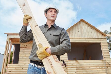 Handyman building vacation woodhouse as DIY project