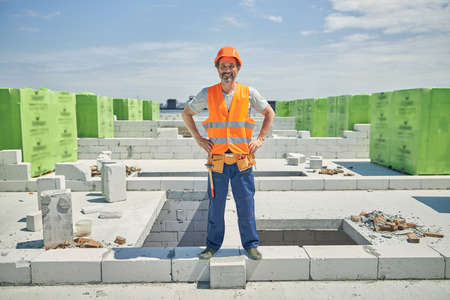 Portrait of joyful man that working on the building