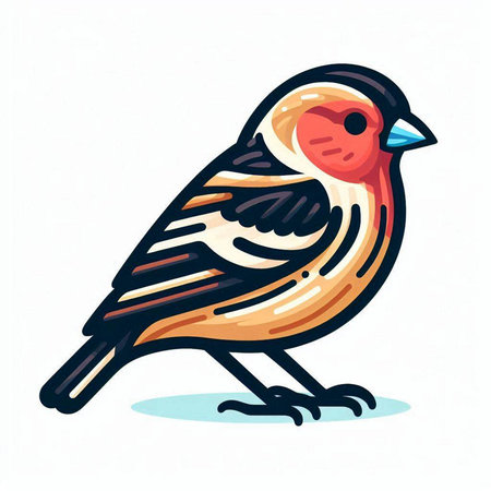 Illustrative drawing of a Common Rosefinch bird flying with open wings. Blurred background.