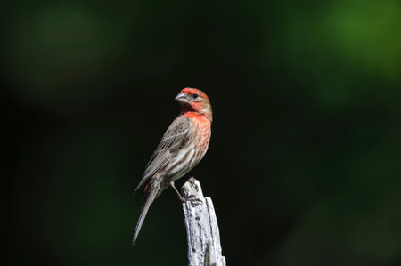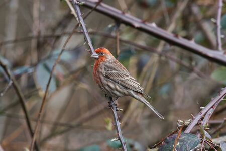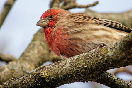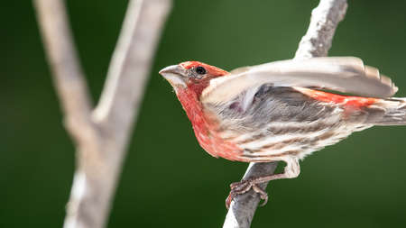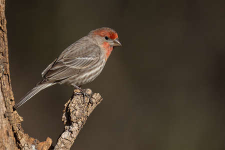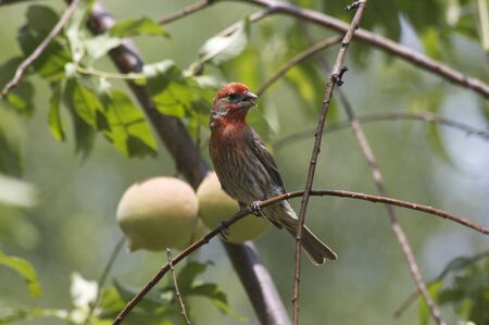 Adult Male House Finch, carpodacus mexicanus, perched on a branch.