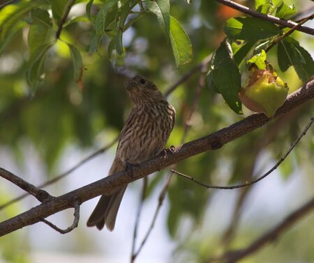 House Finch (Female) on Peach Tree (Carpodacus mexicanus)