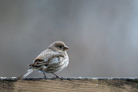 House Finch Haemorhous mexicanus standing in the snow in Maryland during the Winter