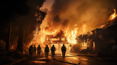 Firefighters stand boldly against a raging fire, highlighting the immense courage and urgency in dire situations