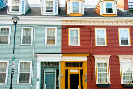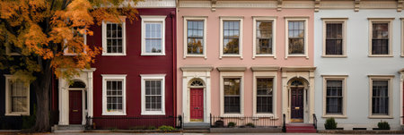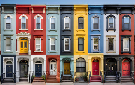 Vibrant Neighborhood with Colorful Houses in a Row Showcasing Unique Architectural Styles and Charm