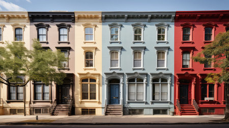 Charming Row of Colorful Houses with Unique Hues and Cozy Features for Ideal Dwelling Homes