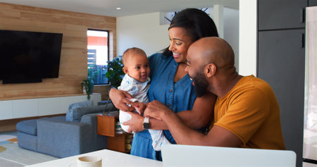 African American Family With Baby Daughter Using Laptop To Check Finances At Home