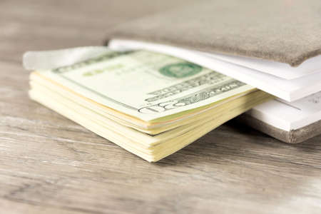 Money dollars and a notebook