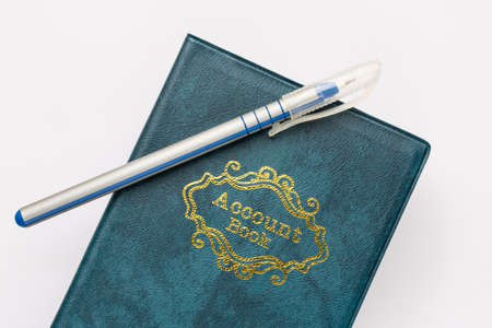 Banner of account book, euro banknotes and fountain pen counting cash
