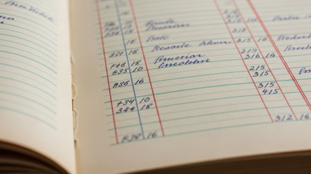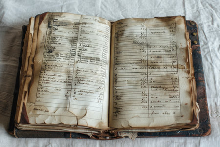 Detailed view of a vintage accounting book showing columns of numbers and cursive text, evoking a sense of history and financial management