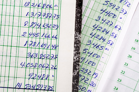 Handwritten accounting on the open pages of some old ledgers