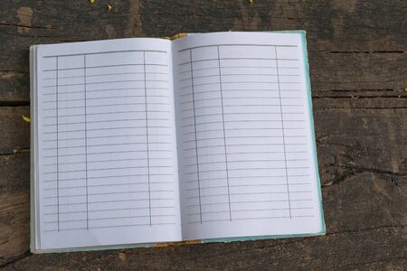 Vintage old Note book on a wood table